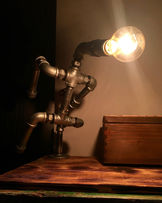 Ceiling Lamp with galvanized steel pipes on wooden base.